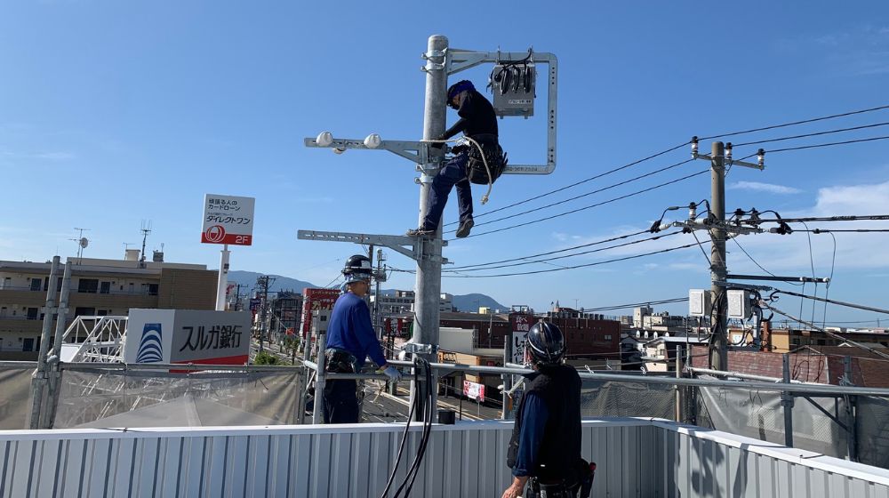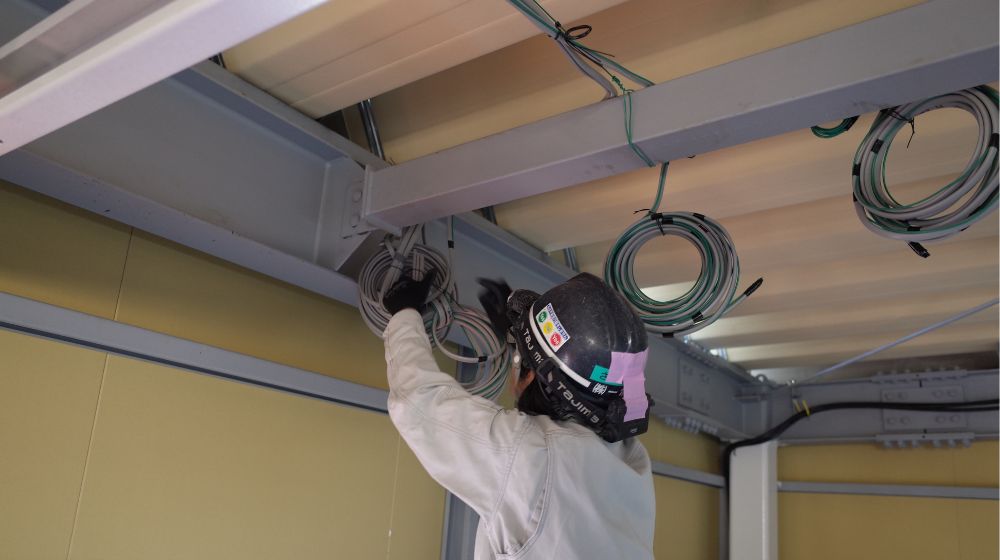 ご依頼いただける規模が大きくなるにつれ、受変電設備への要望も高まってきました。トータルでサポートできるようになるため、資格を取得。受変電設備の工事から、検査・補修まで行います。強電設備が求められる病院、工場、倉庫などから、オフィスや商業ビルなどの弱電設備で対応できる建築まで幅広く対応が可能となりました。